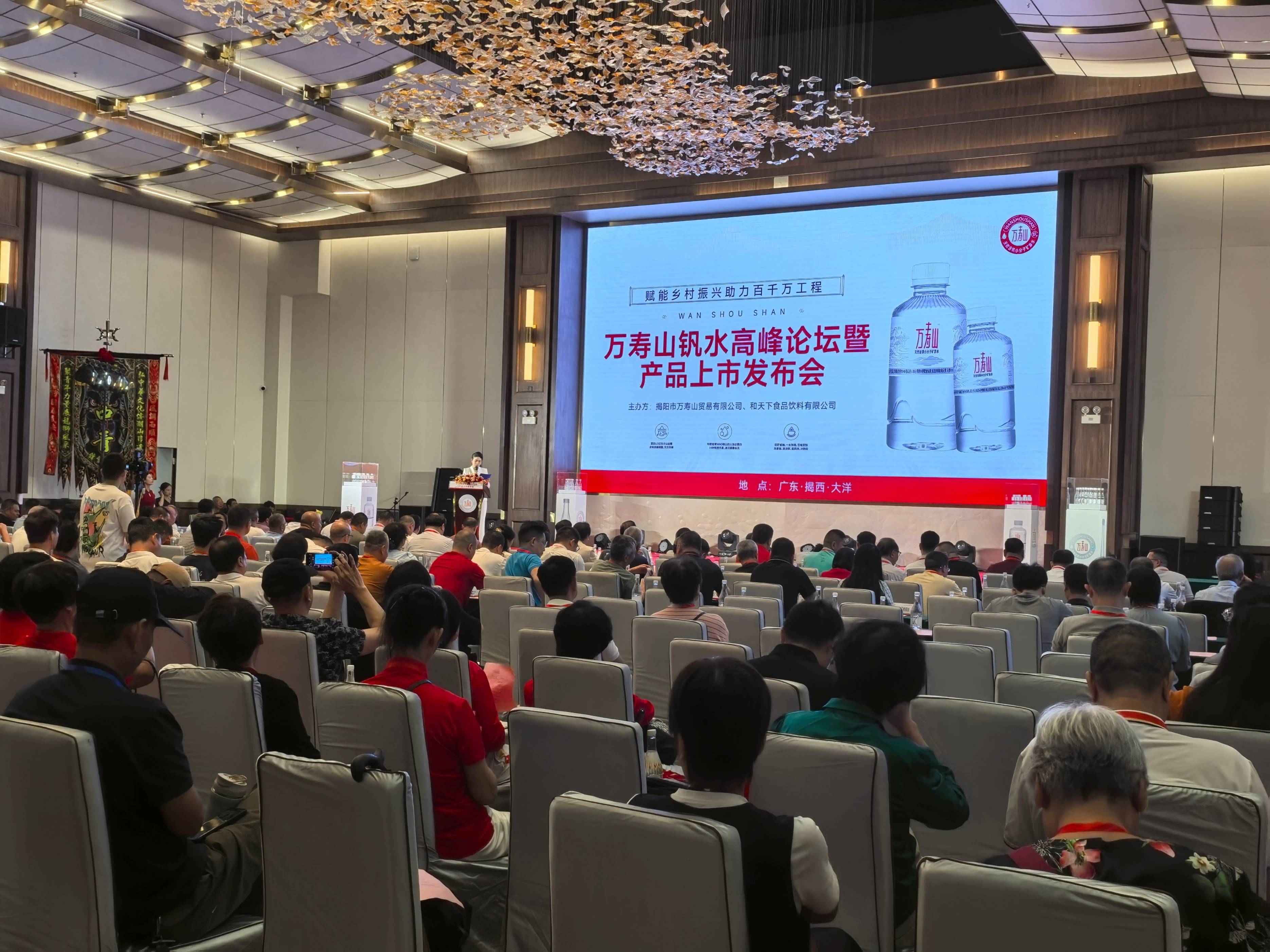 10月13日,粤东揭阳,北山招手,大洋欢歌。在揭西县大洋国际生态旅游区,一场以“赋能乡村振兴,助力百千万工程”为主题的万寿山钒水高峰论坛暨产品上市发布会举行。活动由揭阳市万寿山贸易有限公司、和天下食品饮料有限公司联合主办,来自全国的行业专家、医疗权威人士、媒体代表以及社会各界人士齐聚一堂,共同见证天然珍稀矿泉水——万寿山天然含钒矿泉水的正式亮相。